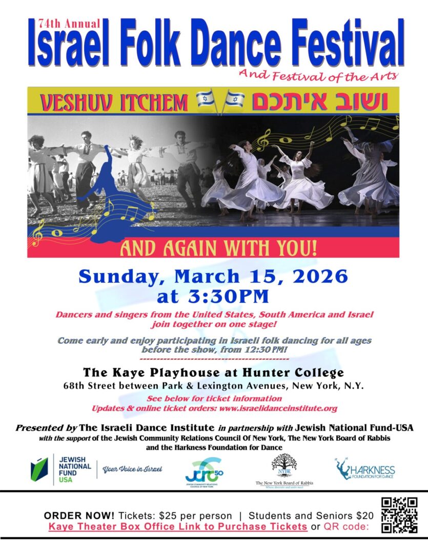 Come early and enjoy participating in Israeli folk dancing for all ages